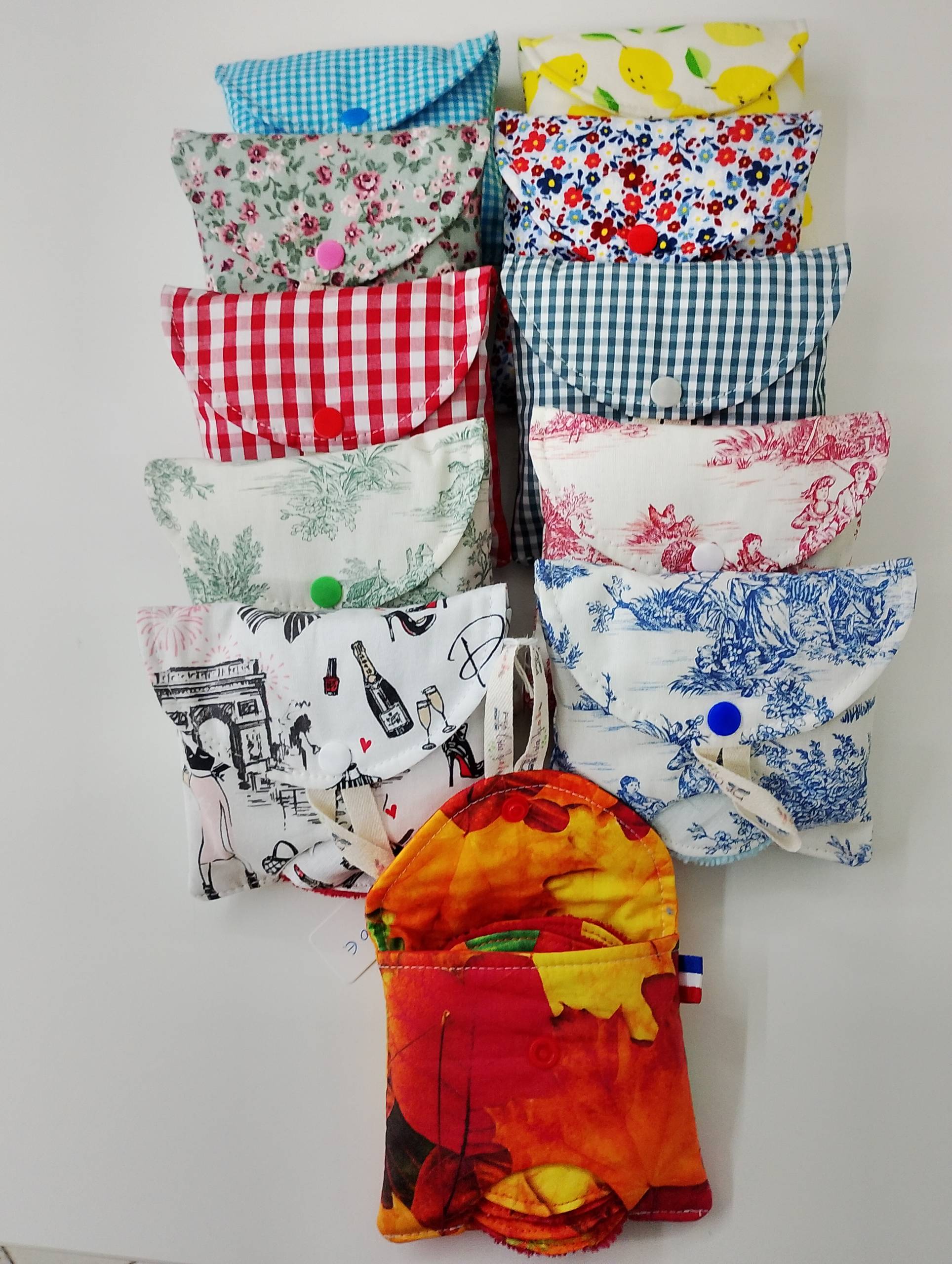 rouge, rouge carreaux, rose toile de jouy, bleu toile de jouy, vert toile de jouy, citrons, turquoise carreaux, Paris, liberty vert, liberty bleu-rouge, carreaux vert